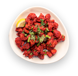 Bite-sized spicy fried chicken served hot with soft paratha.