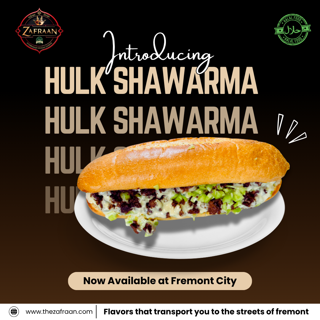From the streets of Hyderabad to the heart of the Bay Area, Zaffran offers handcrafted dishes made with rich spices, pure desi ghee, and fresh ingredients. We specialize in Hyderabadi biryani, juicy chicken shawarma, crispy appetizers, and traditional desserts—all 100% Zabiha Halal.